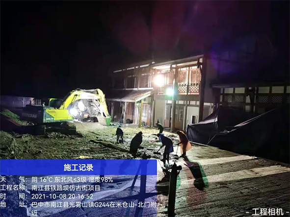 10月16日晚12時許,光霧山鐵爐壩旅游文化產(chǎn)品展示區(qū)項目建設(shè)現(xiàn)場仍然燈火通明,工人們還在緊張施工,全力搶進度。為了確保第十九屆四川光霧山國際紅葉節(jié)開幕前如期完工,項目部在王健經(jīng)理的帶領(lǐng)下,項目施工人員已經(jīng)以“5+2”“白加黑”的模式,從國慶假期到現(xiàn)在已連續(xù)加班了17天。