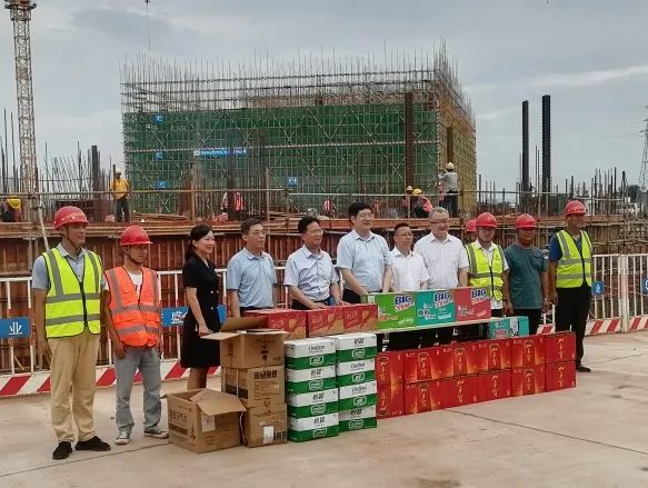 6月5日下午,贛州市委常委、市政府常務(wù)副市長胡劍飛到贛州經(jīng)開區(qū)文化藝術(shù)中心(A、C地塊)建設(shè)項(xiàng)目部開展端午“兩不?!闭{(diào)研工作,向堅(jiān)守在一線的工作人員發(fā)放防暑降溫用品。省蘇區(qū)辦副主任、市蘇區(qū)辦主任、市發(fā)改委主任盧述銀,市政府副秘書長、辦公室主任溫江濤,市工信局局長宋鵬陪同調(diào)研。