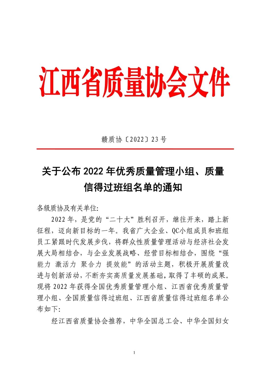 喜訊|宏盛建業(yè)9組QC小組獲2022年江西省優(yōu)秀質(zhì)量管理小組榮譽(yù)稱號(hào)
