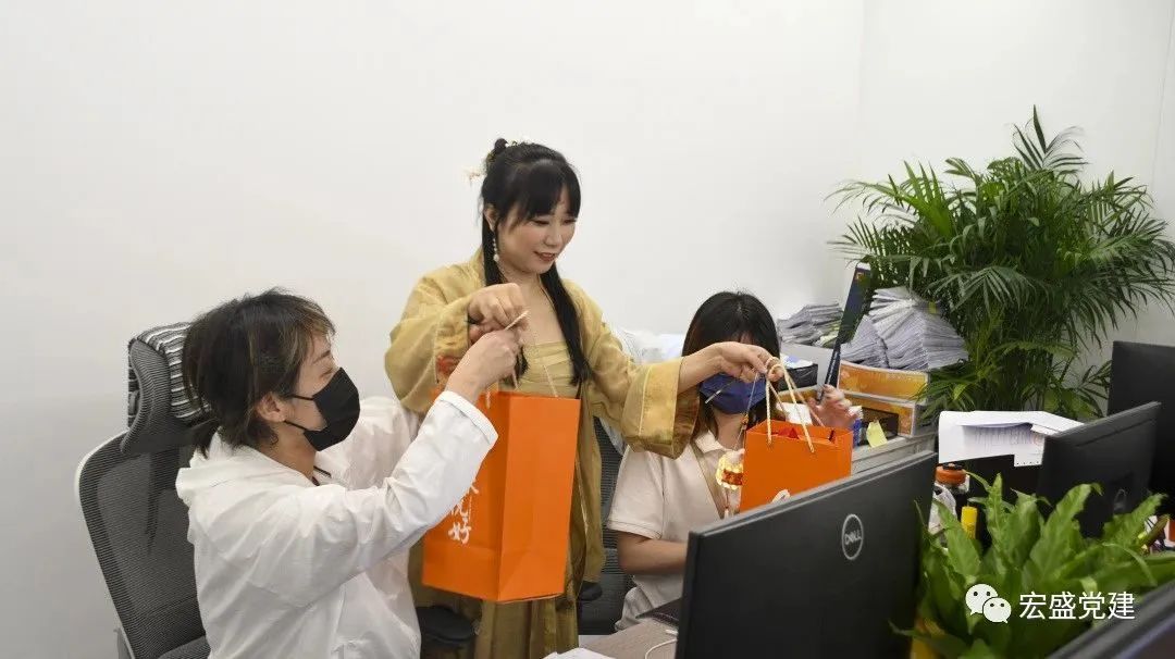 活動(dòng)中,為弘揚(yáng)中華傳統(tǒng)文化,黨員志愿服務(wù)者還身著中國(guó)古裝漢服,到各個(gè)工位為奮斗在崗位上的員工送上月餅禮袋,在福利發(fā)放中,員工們的喜悅之情溢于言表,體會(huì)到了滿(mǎn)滿(mǎn)的幸福感和歸屬感,紛紛表示,感謝公司對(duì)每位員工的關(guān)懷,一定要轉(zhuǎn)化為積極工作的動(dòng)力,努力為企業(yè)發(fā)展賦能、為美好生活?yuàn)^斗。
