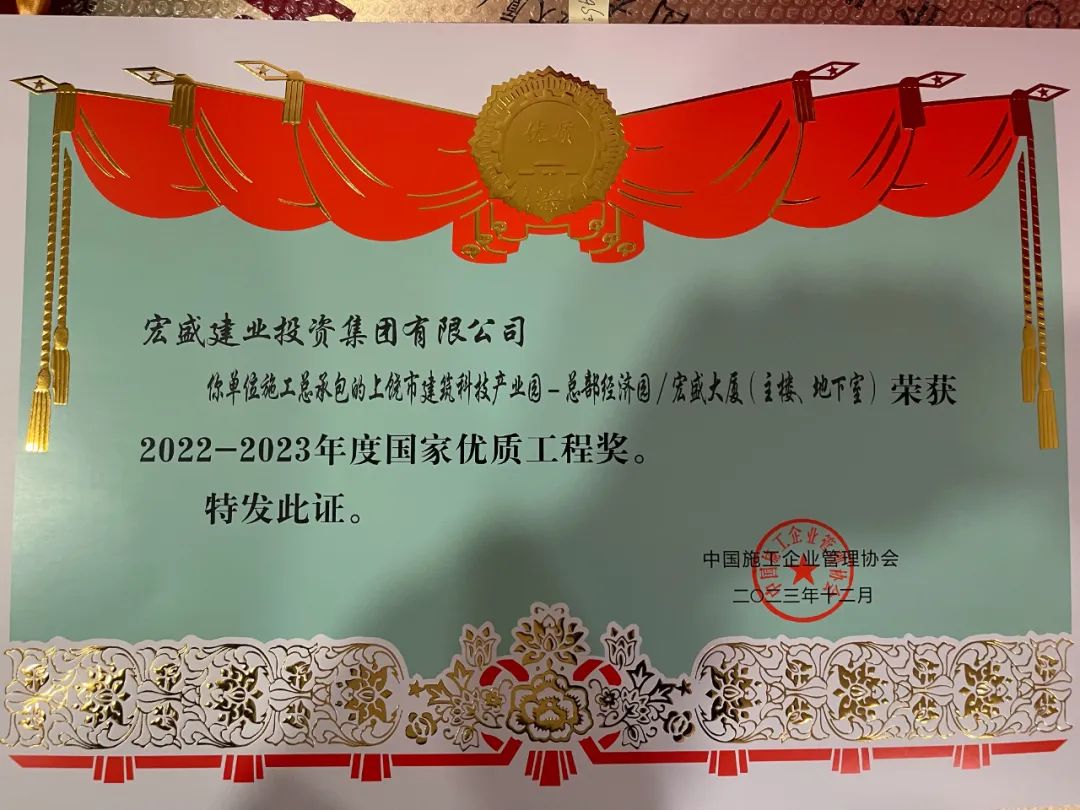 實“質(zhì)”名歸丨宏盛建業(yè)斬獲國家優(yōu)質(zhì)工程獎