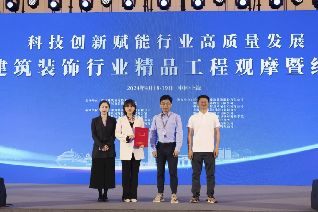 2024年4月18日至19日,中國(guó)建筑裝飾協(xié)會(huì)“2024年建筑裝飾行業(yè)精品工程觀摩暨經(jīng)驗(yàn)交流會(huì)”在上海召開。本次會(huì)議主要以展望建筑裝飾前沿技術(shù),總結(jié)推廣行業(yè)優(yōu)質(zhì)工程創(chuàng)建的先進(jìn)經(jīng)驗(yàn)做法為主要內(nèi)容,圍繞“科技創(chuàng)新賦能行業(yè)高質(zhì)量發(fā)展”為會(huì)議主題,各演講嘉賓對(duì)創(chuàng)精品工程過程的策劃與管理進(jìn)行了精彩的演講,獲得了與會(huì)人員的高度認(rèn)可。宏盛建業(yè)受邀參加此次會(huì)議,并就行業(yè)科技創(chuàng)新方面作成果展出。