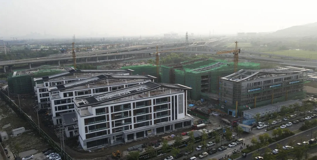 杜甫中學(xué)位于良渚新城,總用地面積 61017 平方米,總建筑面積 73356.00m2,其中 8號(hào)樓、9號(hào)樓大跨度型鋼梁施工難度較大,8號(hào)樓體育館型鋼梁?jiǎn)慰?41.4 米,梁高 2.1 米、寬 1.0 米;9號(hào)樓報(bào)告廳型鋼梁?jiǎn)慰?31.4 米,梁高 2.0 米、寬 0.8 米。面對(duì)如此跨度的型鋼梁,又逢江南多雨季節(jié),完成如此“龐然大物”吊裝工作并控制在毫米級(jí)誤差,對(duì)項(xiàng)目部施工技術(shù)管理工作是一項(xiàng)巨大的挑戰(zhàn)。
