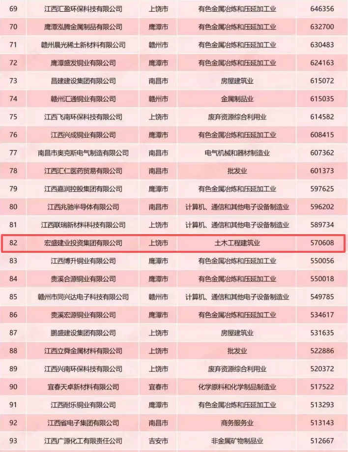 喜訊|2025江西民營(yíng)企業(yè)100強(qiáng)榜單發(fā)布 宏盛建業(yè)投資集團(tuán)實(shí)力入選