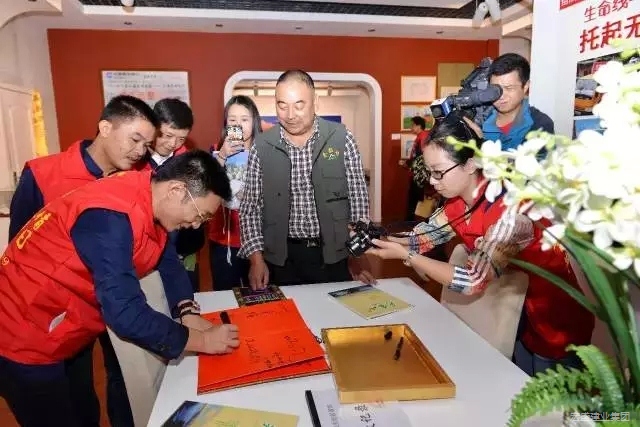 集團(tuán)公司董事長周金虎在文體中心抗震救災(zāi)紀(jì)念館受邀簽上“重溫援建情,共慶勝利日”