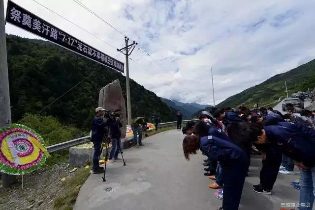 9月1日,所有人員一大早就出發(fā)前往天路“美汗公路”,翻越海拔4916米的木殼梁子埡口,來到紀(jì)念碑處,汗牛鄉(xiāng)的群眾們早已在路上列隊(duì)歡迎遠(yuǎn)方而來的江西親人們。2009年7月17日,突如其來的“7.17”特大泥石流災(zāi)害,江西省援建者中的五名工友長眠在了這片他們?nèi)找箠^戰(zhàn)的雪域高原。
