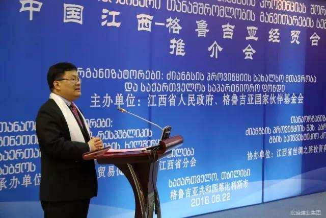 6月22日上午,江西省政府和格魯吉亞國(guó)家伙伴基金在格魯吉亞首都第比利斯共同舉辦“中國(guó)江西-格魯吉亞經(jīng)貿(mào)合作推介會(huì)”。江西省政府劉昌林副省長(zhǎng)出席推介會(huì)并作主旨演講,格魯吉亞第一副總理、經(jīng)濟(jì)與可持續(xù)發(fā)展部部長(zhǎng)庫(kù)姆西什維利、格魯吉亞國(guó)家伙伴基金主席大衛(wèi)·薩加涅利澤、中國(guó)駐格魯吉亞大使館商務(wù)參贊劉波出席推介會(huì)并先后致辭。江西鐵路投資集團(tuán)公司與格魯吉亞國(guó)家伙伴基金、江西省貿(mào)促會(huì)與格魯吉亞商業(yè)協(xié)會(huì)分別簽署合作協(xié)議。