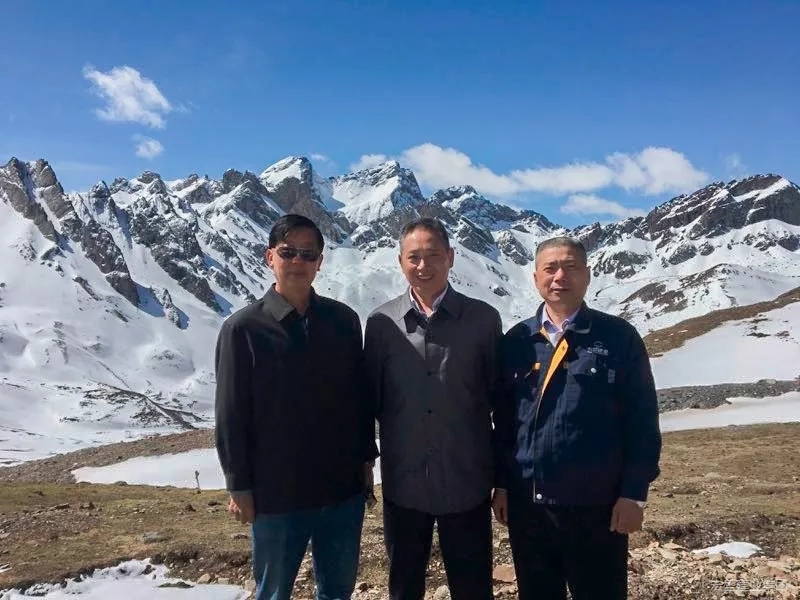 宏盛建業(yè)投資集團(tuán)有限公司工程部負(fù)責(zé)人榮十勝(右一)與江西省政協(xié)黨組副書記、副主席(原援建指揮部指揮長)陳俊卿同志(右二)、四川省阿壩州人大常委會副主任李洪勇(左一)在美汗公路邊合影