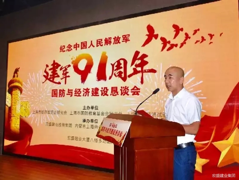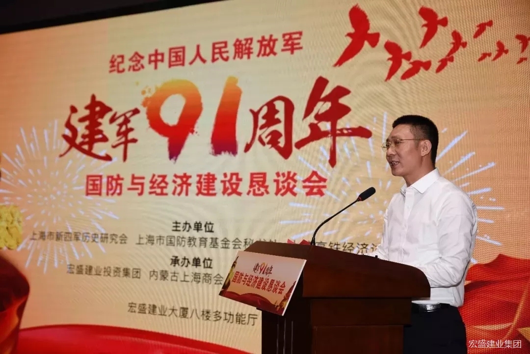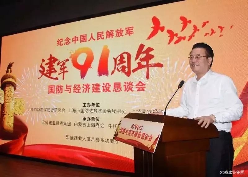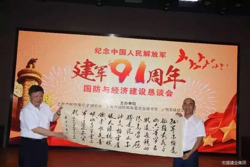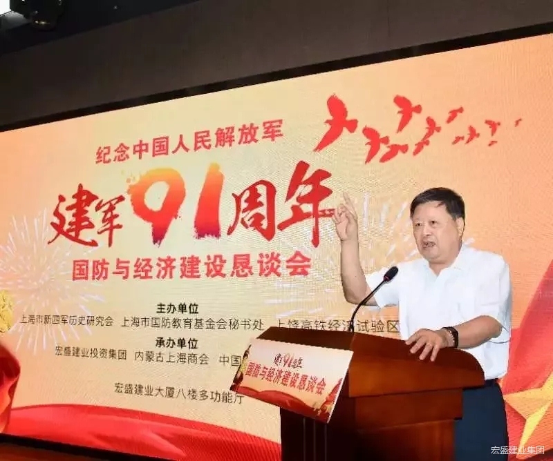 7月25日下午,由上海市國防教育辦公室指導,上海市新四軍歷史研究會、上海市國防教育基金會秘書處、上饒市高鐵經(jīng)濟試驗區(qū)等單位主辦,宏盛建業(yè)投資集團等承辦的“慶祝中國人民解放軍建軍91周年---國防與經(jīng)濟建設懇談會”在集團上??偛堪藰桥e行,來自四十二家商協(xié)會秘書長參加、國防教育先進單位代表100多人出席活動。