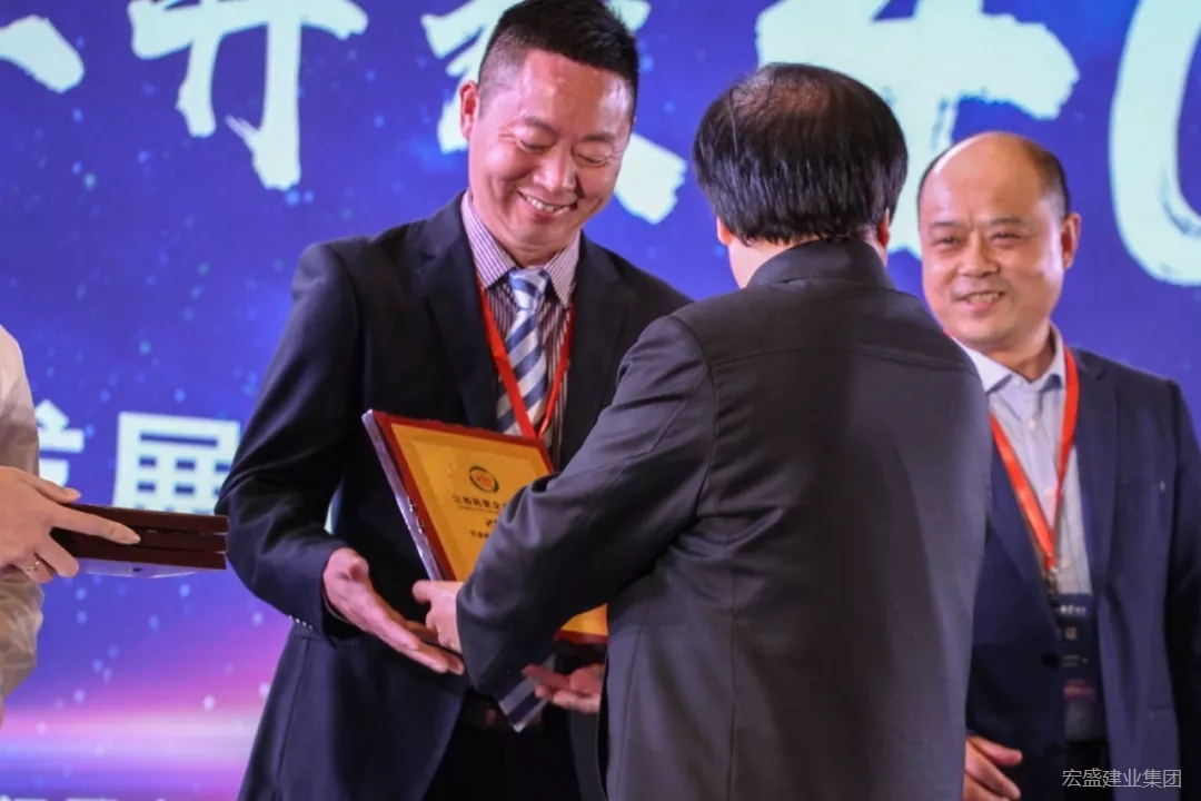 宏盛建業(yè)集團總裁陳明山作為代表接牌匾