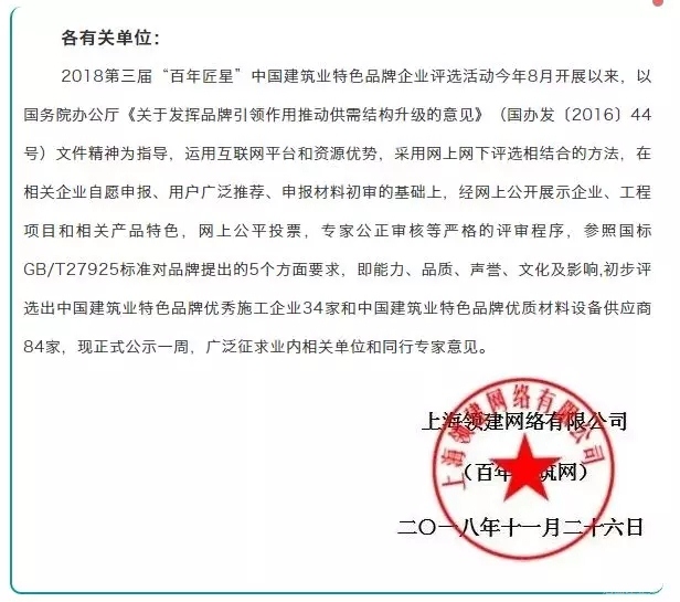 榮獲2018第三屆“百年匠星”中國建筑業(yè)特色品牌優(yōu)秀施工企業(yè)