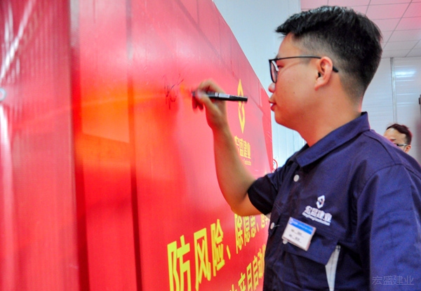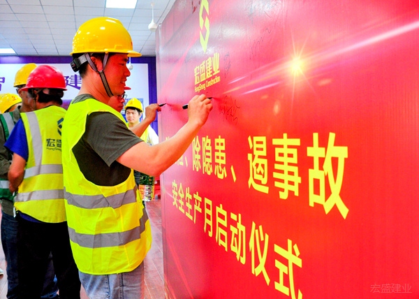 啟動儀式上,大家爭相在背景墻上簽下名字,紛紛表態(tài),在公司“鑄精品工程,創(chuàng)美好生活”的核心價值觀引領下,把安全生產擺在首位,真抓實干、嚴格規(guī)范、不斷優(yōu)化、確保安全。以本次啟動儀式為起點,宏盛建業(yè)投資集團全面掀起一股項目創(chuàng)優(yōu)、爭做安全生產標兵的潮流。