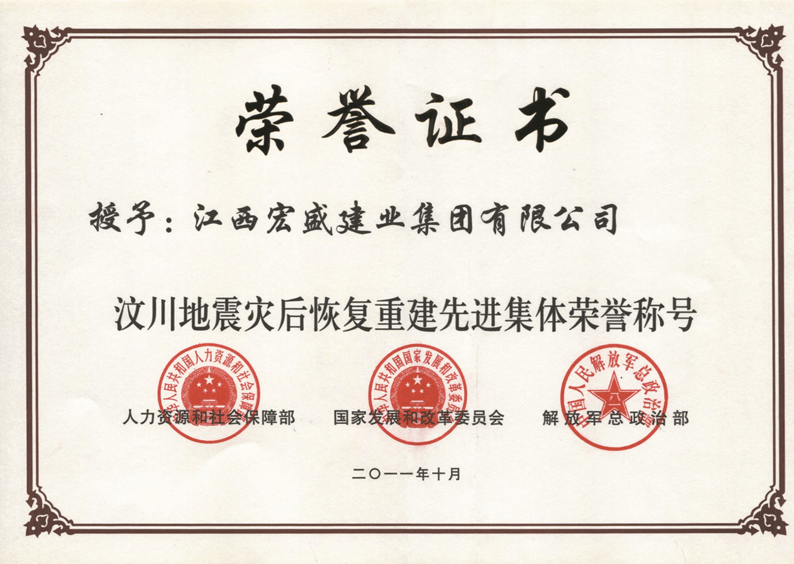汶川地震災(zāi)后恢復(fù)重建先進集體
