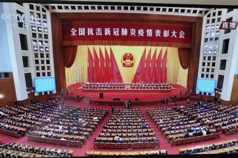 中共中央總書記、國家主席、中央軍委主席習(xí)近平向在抗擊新冠肺炎疫情斗爭中作出杰出貢獻(xiàn)的功勛模范人物頒授勛章獎?wù)虏l(fā)表重要講話。“共和國勛章”獲得者鐘南山、“人民英雄”國家榮譽(yù)稱號獲得者張伯禮、張定宇、陳薇四人在列。大會還對全國抗擊新冠肺炎疫情先進(jìn)個人、先進(jìn)集體、全國優(yōu)秀共產(chǎn)黨員、全國先進(jìn)基層黨組織進(jìn)行表彰。