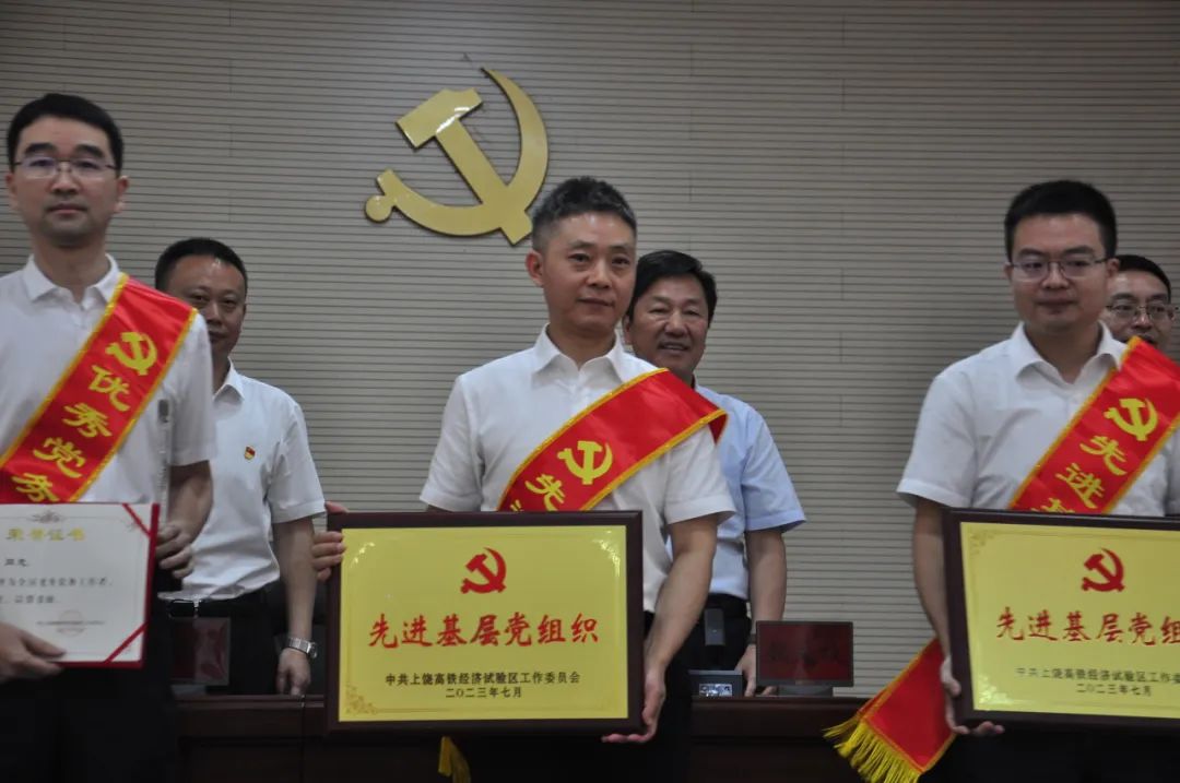 為弘揚正氣、樹立標桿,6月29日上午,上饒高鐵經濟試驗區(qū)召開全區(qū)“兩優(yōu)一先”表揚大會,宏盛建業(yè)投資集團有限公司黨組織榮獲“先進基層黨組織”榮譽稱號,集團公司副董事長、總裁周金旺同志作為先進基層黨組織代表接受頒獎。