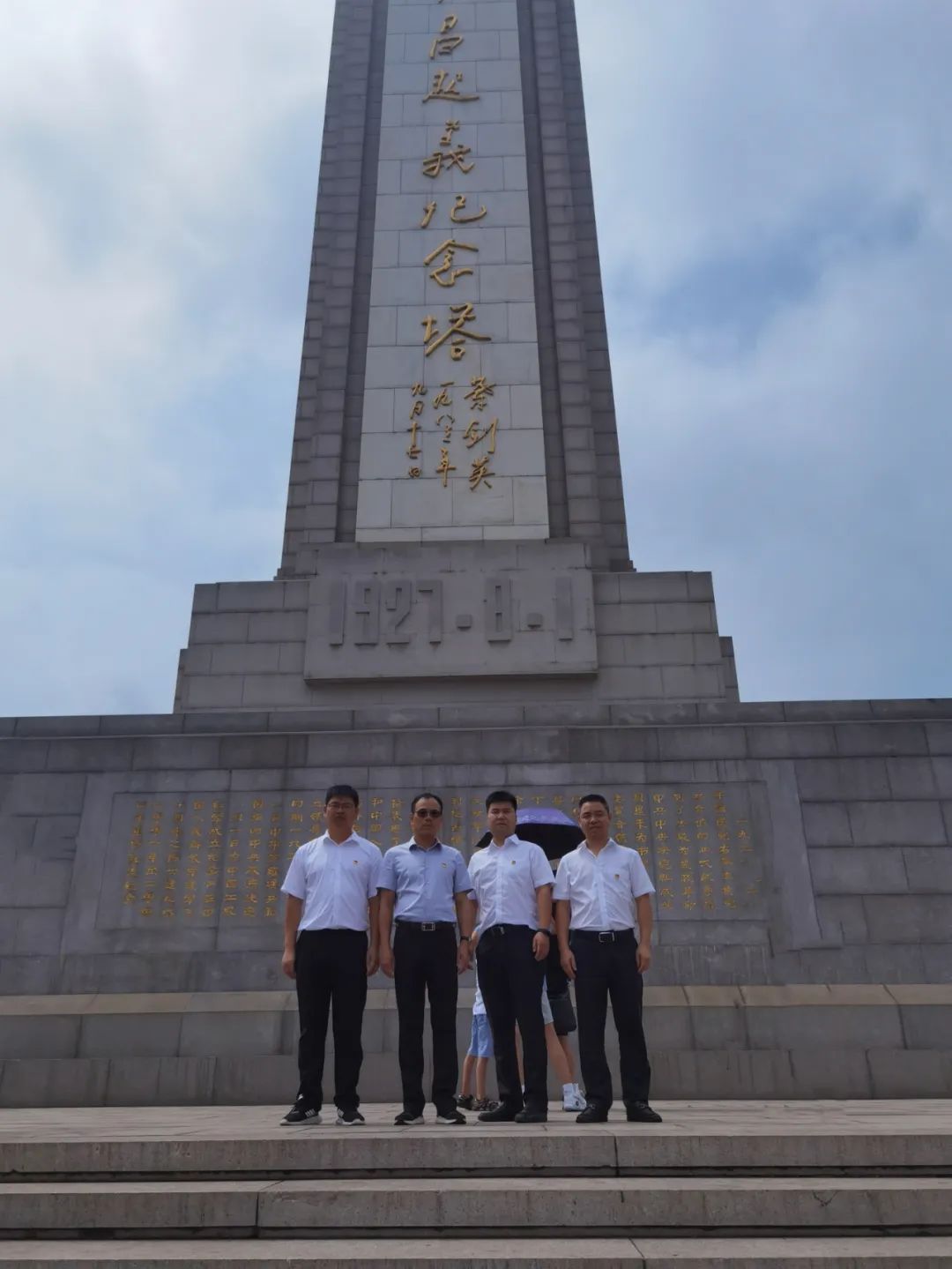 當(dāng)天上午,華中區(qū)域黨支部全員身著白襯衫,佩戴黨徽,集體乘車(chē)前往八一廣場(chǎng),整個(gè)廣場(chǎng)氣勢(shì)磅礴,雄偉壯觀,在巍然矗立的八一南昌起義紀(jì)念塔前,支部委員康春華向大家詳細(xì)解讀了紀(jì)念塔塔基、塔座、塔身、塔頂四部分的內(nèi)容和寓意。隨后,支部成員一行在“宣布起義”、“攻打敵營(yíng)”、“歡呼勝利”三幅大型花崗巖浮雕前駐足凝視,懷著莊嚴(yán)肅穆的心情瞻仰紀(jì)念塔,認(rèn)真敬讀金色碑文,追溯革命前輩的奮斗歷程,感悟偉大祖國(guó)的滄桑巨變。