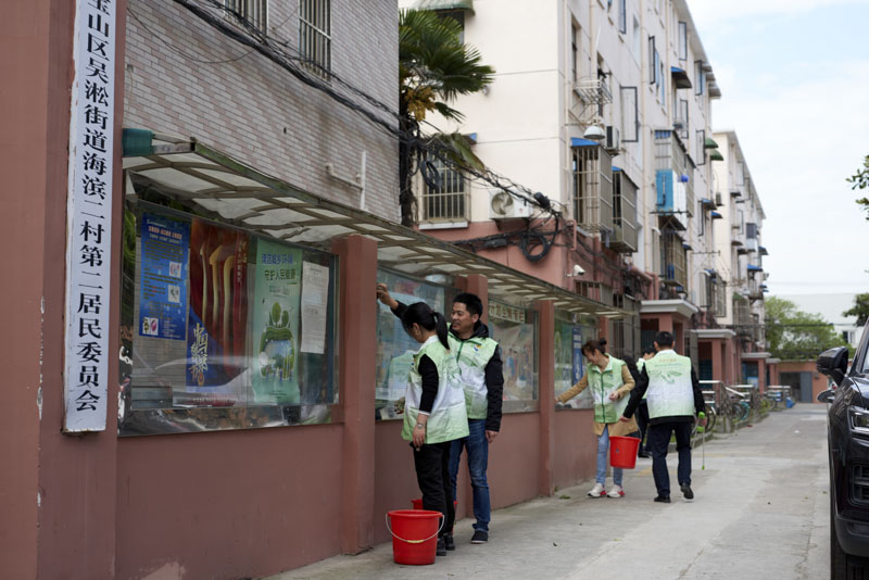“走!帶上工具,大家一起去打掃衛(wèi)生!”另一組志愿者們,有的拿著鏟子、刷子,一張張仔細地鏟除居民樓上張貼的小廣告;有的手拿夾子沿著社區(qū)主干道撿拾垃圾;也有志愿者主動拿起抹布,一塊一塊仔細地擦拭社區(qū)宣傳欄。在大家的共同努力之下,社區(qū)環(huán)境煥然一新,變得更加整潔、干凈,路過的居民紛紛向志愿者們豎起了大拇指,現(xiàn)場一派其樂融融。