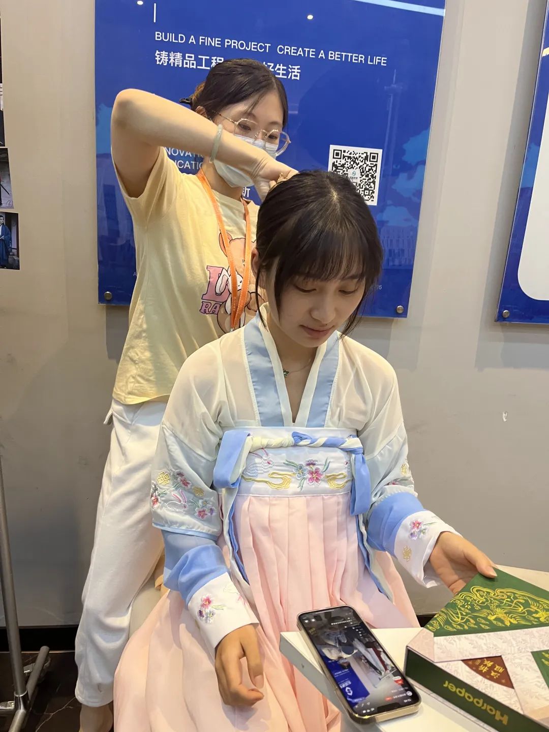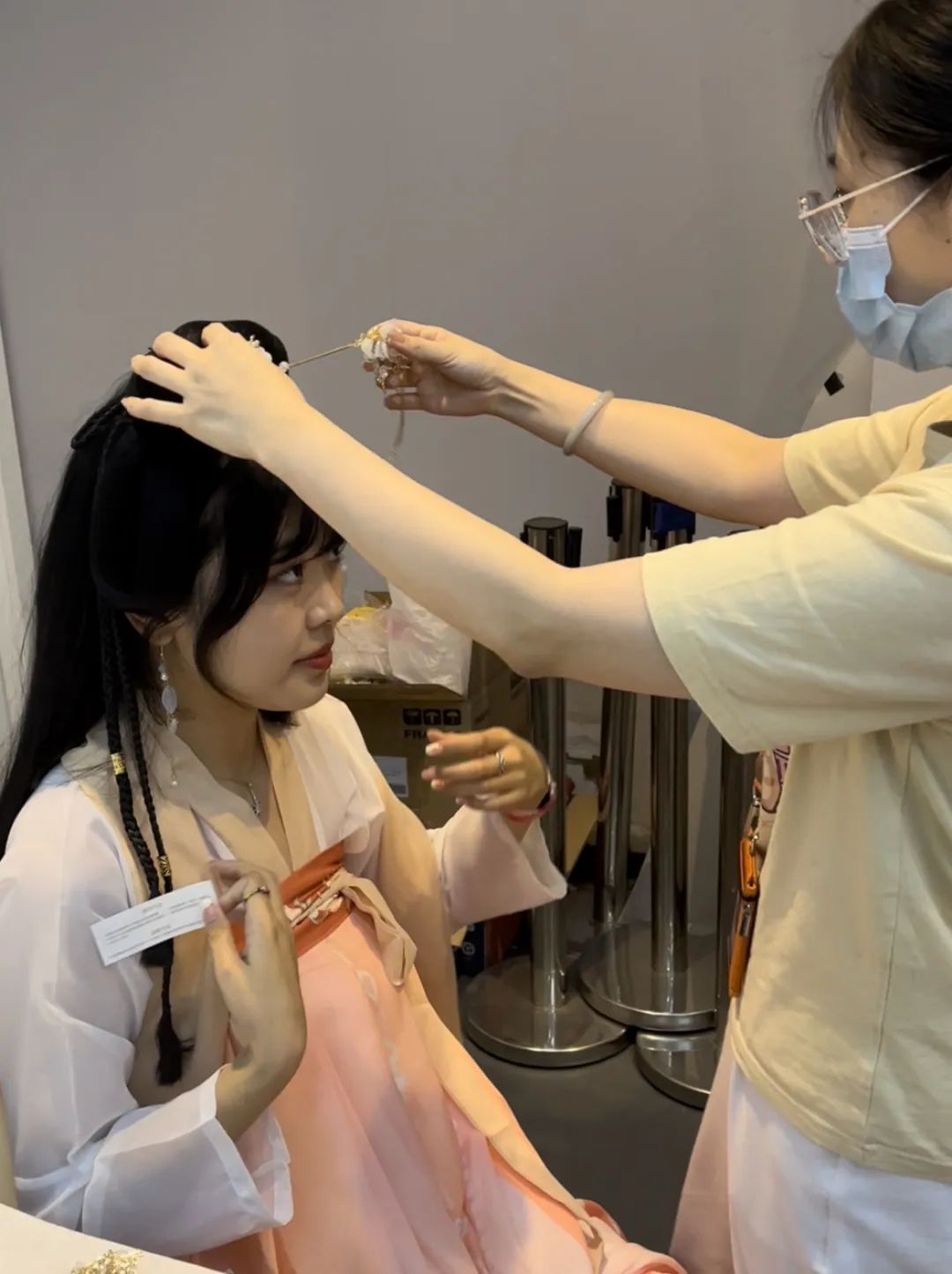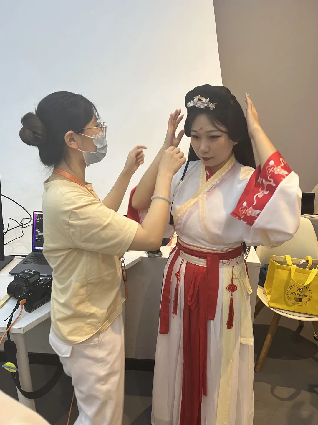 化妝師為已經(jīng)穿戴好漢服的同事整理發(fā)型、裝扮頭飾,攝影師們不斷指導拍攝動作、調(diào)整姿態(tài),一張張屬于宏盛家人們自己的漢服照完美呈現(xiàn)出來。大家都說:“拍的真好,不但美,連古代的那種意境也都體現(xiàn)地淋漓盡致,非常期待成品!”