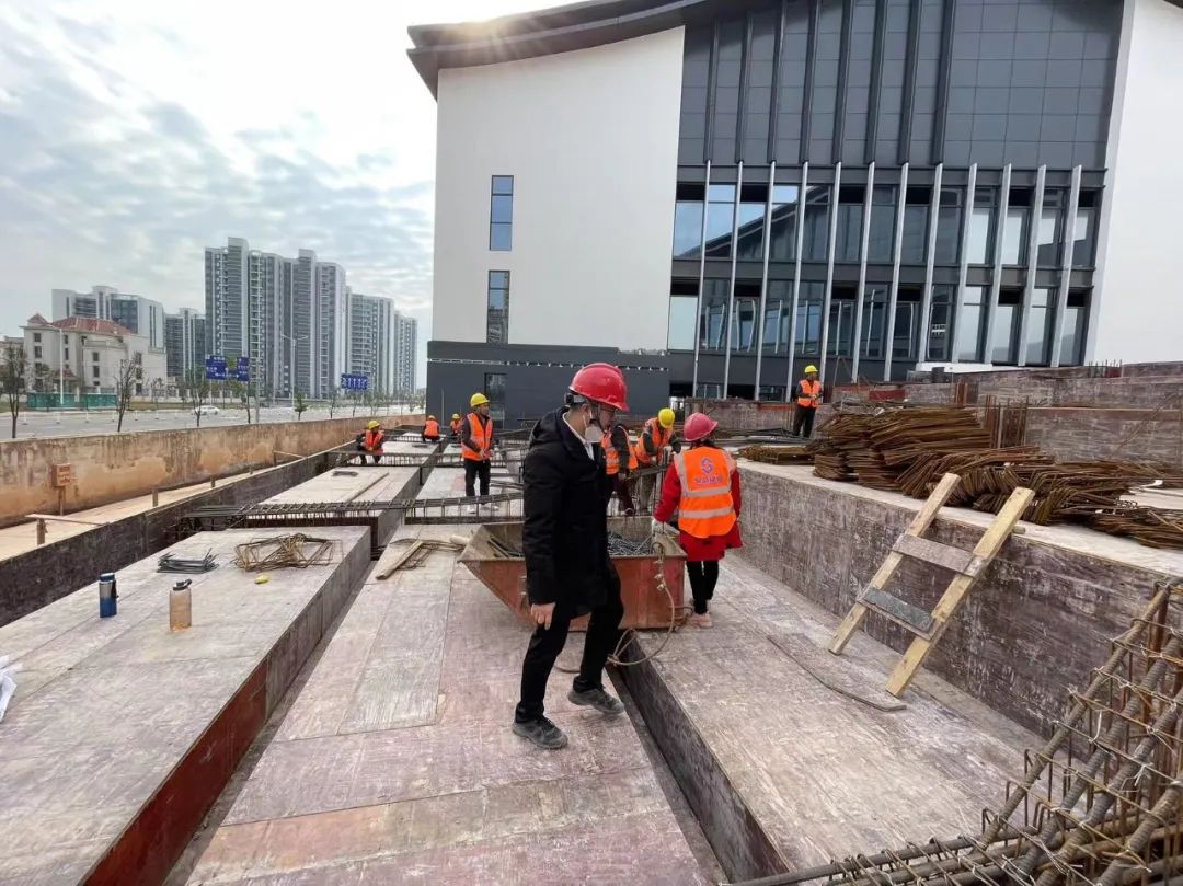 贛州經(jīng)開區(qū)文化藝術(shù)中心項目作為市區(qū)重點建設(shè)項目,項目部積極響應政府號召,春節(jié)期間不停工,全力保安全抓進度促生產(chǎn),奮力沖刺一季度“開門紅”。項目經(jīng)理官輝說道,“在春節(jié)期間,我們安排了工人堅守崗位,在保證安全的前提下,盡量去推進進度?!痹擁椖坎繛楸U洗汗?jié)期間施工正常有序進行,重點加強施工安全管理,堅決杜絕安全事故發(fā)生,同時積極做好餐飲、文化、娛樂等后勤保障工作。