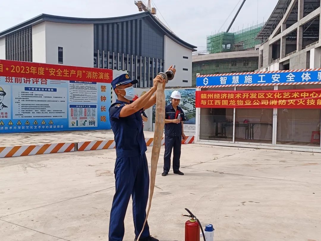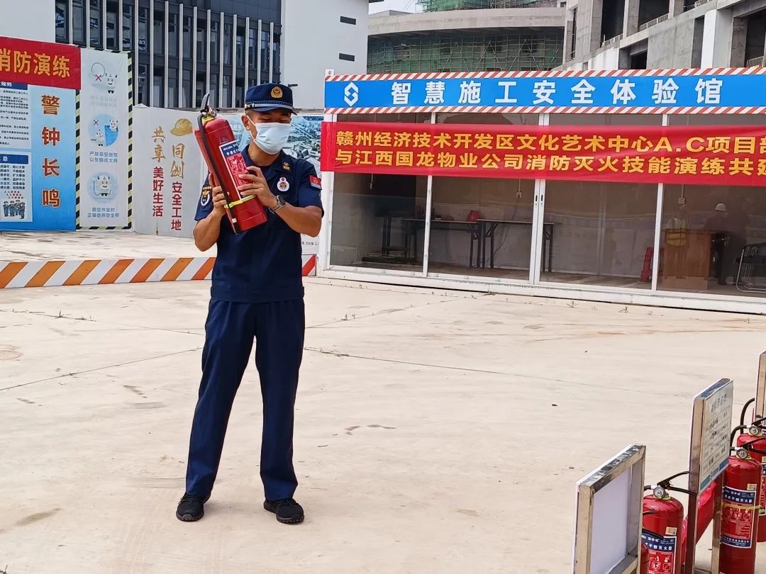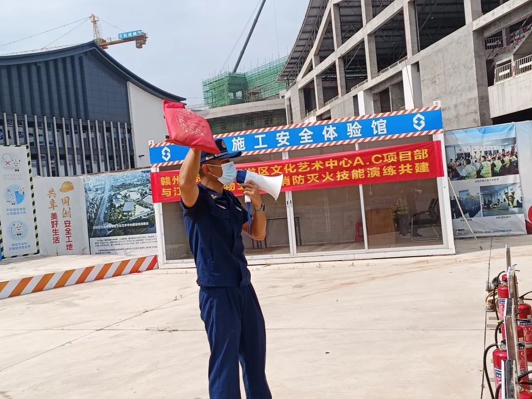 2023年6月11日上午9點(diǎn),贛州經(jīng)開區(qū)文化藝術(shù)中心項(xiàng)目部與江西國龍物業(yè)公司在項(xiàng)目部現(xiàn)場聯(lián)合開展消防演練。項(xiàng)目部負(fù)責(zé)人葉興武、全體項(xiàng)目管理人員及各班組成員一起參于本次消防演練。此次消防演練特別邀請了贛州應(yīng)急救援隊(duì)中隊(duì)長俞加寶進(jìn)行全程指導(dǎo)講解。