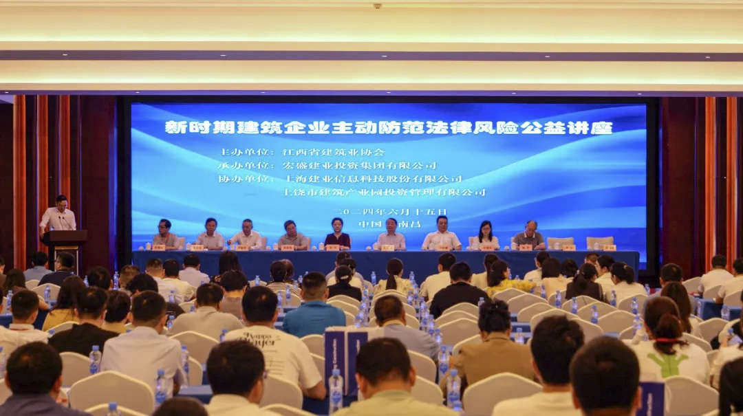 6月15日上午,由江西省建筑業(yè)協(xié)會(huì)主辦、宏盛建業(yè)投資集團(tuán)有限公司承辦、上海建業(yè)信息科技股份有限公司及上饒市建筑科技產(chǎn)業(yè)園投資管理有限公司協(xié)辦的“新時(shí)期建筑企業(yè)主動(dòng)防范法律風(fēng)險(xiǎn)”公益講座在江西·南昌贛江賓館圓滿舉辦。本次講座隆重邀請了江西省住建廳相關(guān)領(lǐng)導(dǎo)、江西省建筑業(yè)協(xié)會(huì)及各分會(huì)領(lǐng)導(dǎo)及專家、各建筑企業(yè)高管及高校負(fù)責(zé)人參與講座,共同分享、交流新時(shí)期下建筑企業(yè)主動(dòng)防范法律風(fēng)險(xiǎn)的整體思路和具體措施,旨在增強(qiáng)建筑企業(yè)法律風(fēng)險(xiǎn)防范意識(shí),規(guī)范企業(yè)經(jīng)營行為,促進(jìn)江西省建筑業(yè)健康發(fā)展。