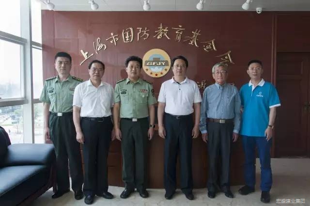 上海市委宣傳部副部長,市文明辦主任潘敏(右三)、上海警備區(qū)政治部副主任,市國防教育辦公室主任謝亞洪大校(右四)到市國防教育基金會指導工作