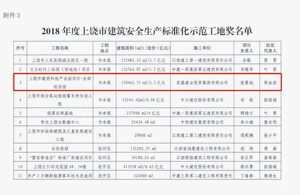 據(jù)了解,本次共通報表彰了2018年度上饒市優(yōu)質(zhì)工程獎14項,2018年度上饒市優(yōu)質(zhì)結構工程獎47項,2018年度上饒市建筑安全生產(chǎn)標準化示范工地獎30項。