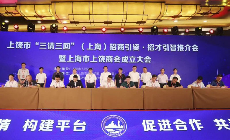 8月1日下午,上饒市“三請三回”(上海)招商引資·招才引智推介會暨上海市上饒商會成立大會在上海華亭賓館隆重舉行。集團(tuán)董事長周金虎當(dāng)選上海市上饒商會會長,并在推介會上與上饒市政府簽訂擬投資40億元落戶上饒經(jīng)開區(qū)的數(shù)智電子科技園項目。