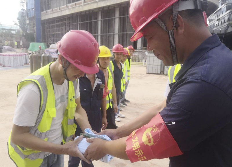 金慧一行一邊發(fā)放慰問品,一邊詢問施工人員工作生活中遇到的困難,提醒大家暑期施工要注意防暑和施工安全,鼓勵(lì)大家要精心組織,科學(xué)管理,攻堅(jiān)克難,奮力拼搏,堅(jiān)持安全與質(zhì)量并抓,持續(xù)推進(jìn)項(xiàng)目建設(shè)進(jìn)度。