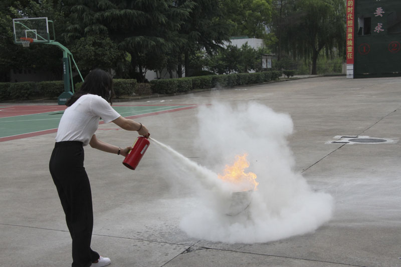 剛下車,我們就受到了喬副站長的熱情接待,待我們人員整頓完畢,就開始給我們開展了消防知識技能培訓,首先讓我們了解了滅火器的種類、用途,并讓每個人都實操了滅火器的使用方法。