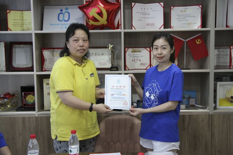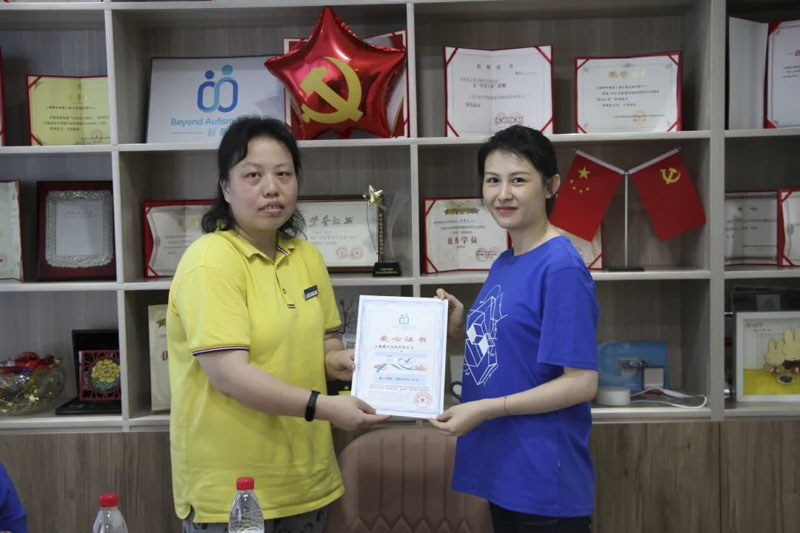 7月9日,宏盛集團(tuán)及上海建業(yè)員工代表一行9人一起來到上海靜安越量兒童心智發(fā)展訓(xùn)練中心,試著了解并走進(jìn)他們的世界。機(jī)構(gòu)領(lǐng)導(dǎo)首先給我們介紹了自閉癥兒童的相關(guān)知識(shí)以及這群孩子的特殊性,讓大家先有一個(gè)初步了解,并帶著我們參觀了整個(gè)機(jī)構(gòu)。