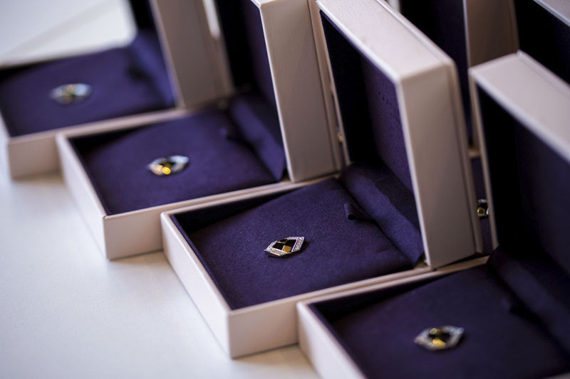宏盛定制司徽,以2塊黃金+48顆鉆石作為主材質(zhì),以宏盛logo作為司徽樣式。集不菲價值、深刻寓意、無上榮譽(yù)于一體。